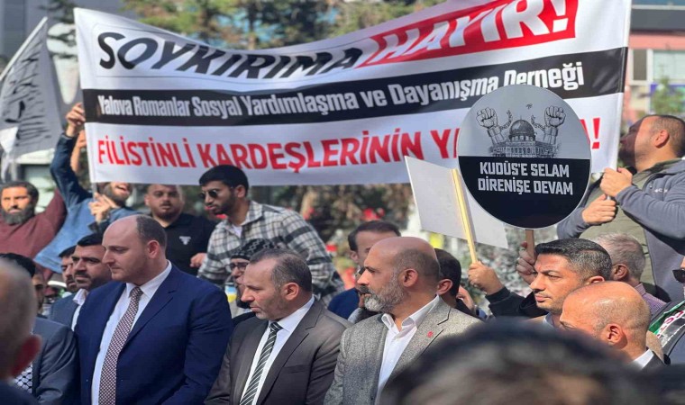 Yalova Merkez Camisi önünde Cuma namazı sonrasında ilk olarak İsrail’in saldırıları sonucu yaşamını yitirilen Filistinliler için dualar okundu. Sonrasında Cevdet Aydın Parkı’nda basın açıklaması gerçekleştirilerek, İsrail’in Gazze saldırıları kınandı.