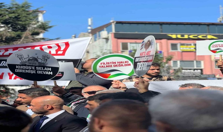 Yalova’da Cuma namazı çıkışında İsrail’in Gazze’ye yönelik saldırıları protesto edildi.