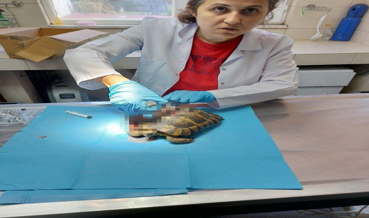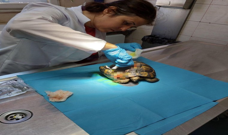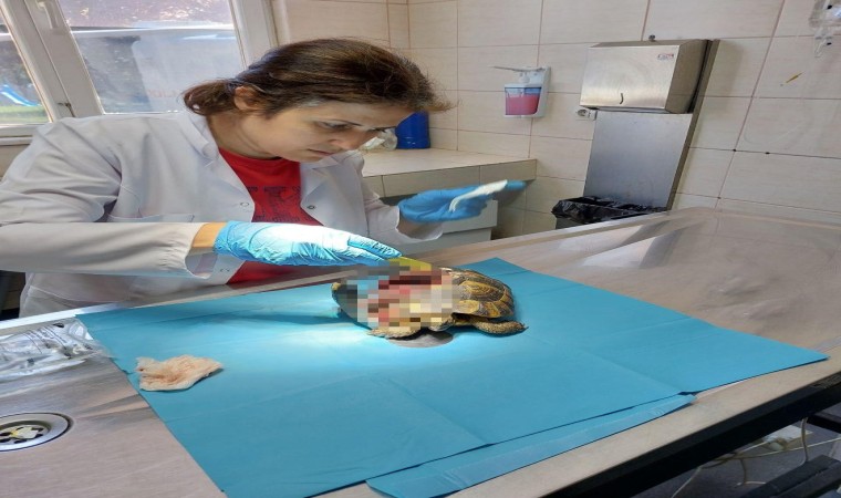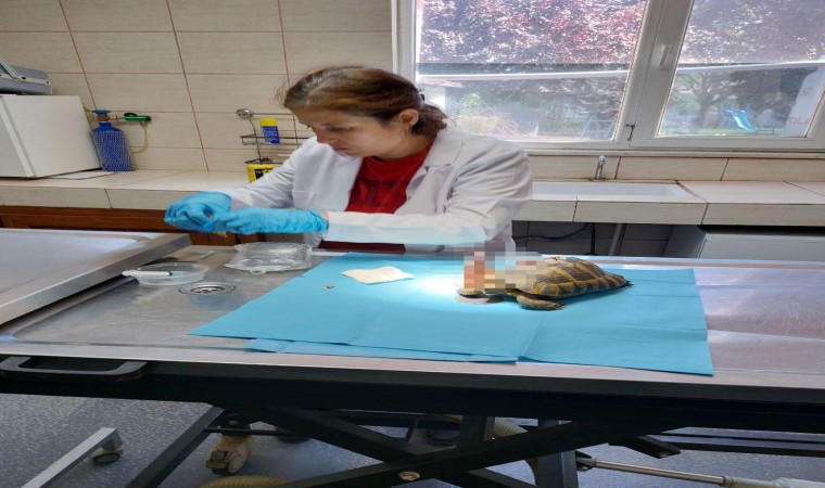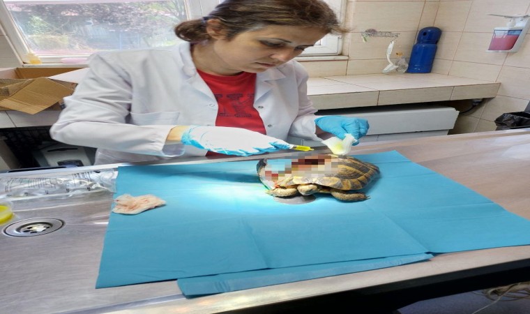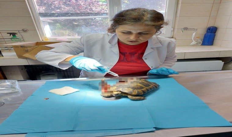 Yalova’da doğada kabuğu kırılmış şekilde yaralı olarak bulunan kaplumbağanın tedavisi yapıldı.