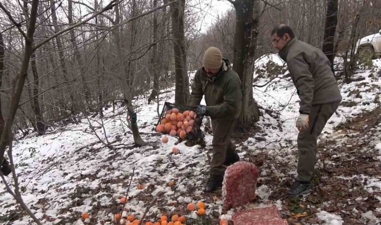 Mısır, besi yemi, tavuk, meyve, yonca, saman olmak üzere 13 ton 300 kilo doğaya yem bıraktıklarını anlatan Uzuner, amaçlarının yaban hayvanlarının aç kalarak yerleşim yerlerine inmelerini engellemek olduğunu kaydetti.