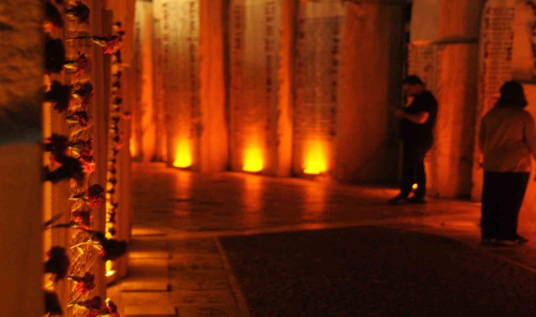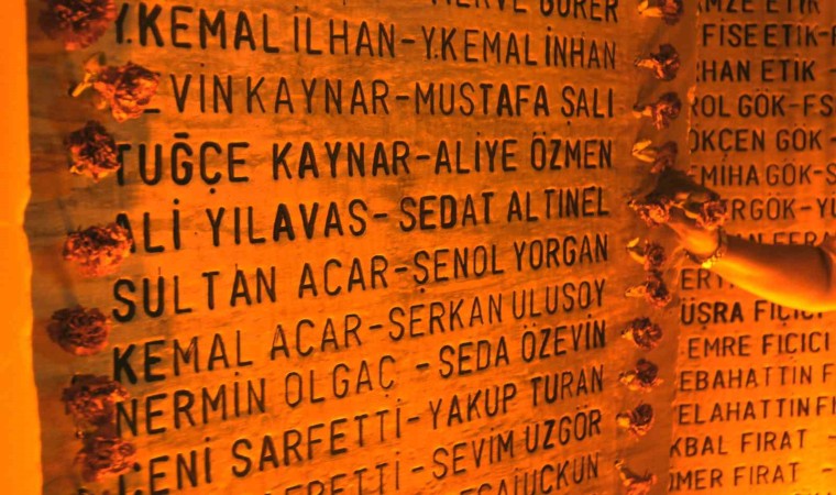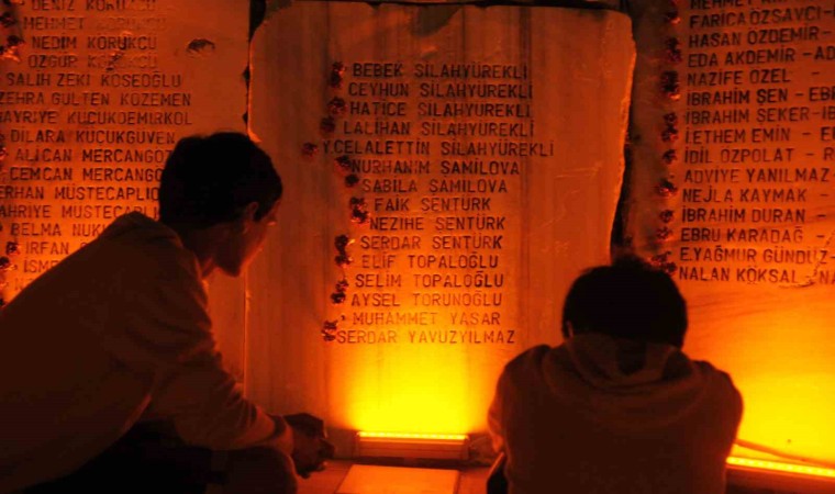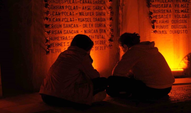 Saatler depremin yaşandığı 03.02’yi gösterdiğinde ise depremde yakınlarını kaybeden vatandaşlar sevdiklerinin isimlerinin yazılı olduğu mermer blokları karanfil bıraktı.