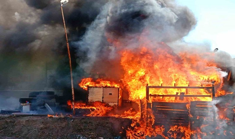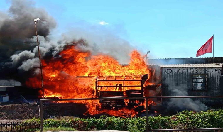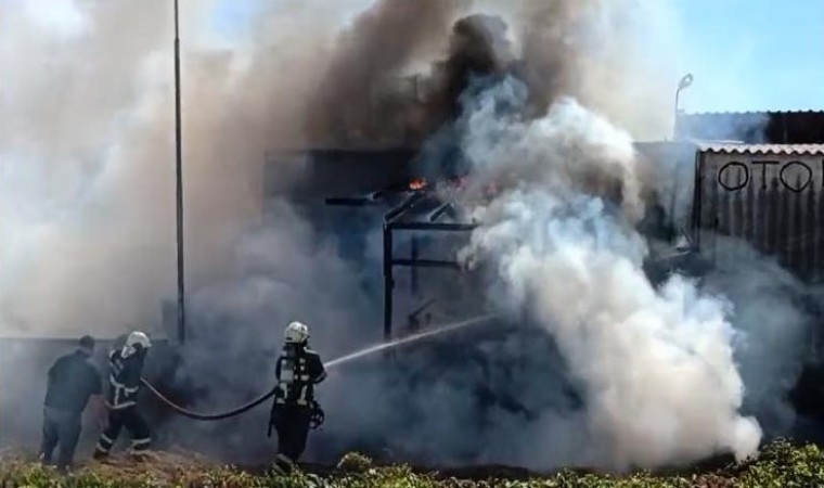 Yangında tamamen küle dönen oto lastikçide maddi hasar meydana geldi.