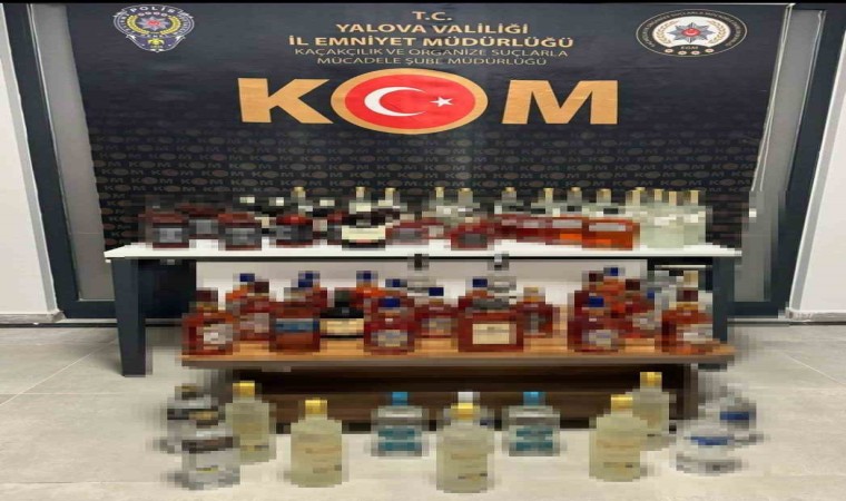 Yalova’da polis tarafından durdurulan bir otomobilde 72 şişe sahte alkol ele geçirildi.