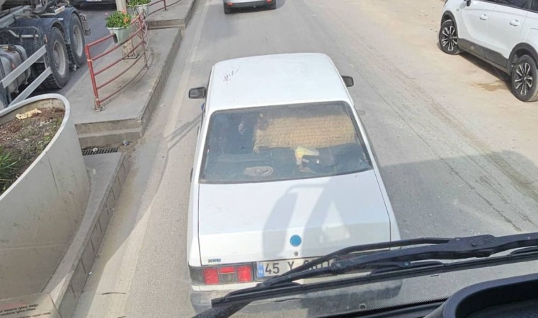 Yalova’da bir otomobilin arka koltuğunda yolculuk yapan koyunu görenler duruma şaştı kaldı.