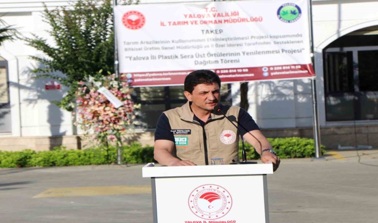 Tarım ve Orman İl Müdürlüğü bahçesinde düzenlenen sera örtüsü dağıtım töreninde konuşan Tarım ve Orman İl Müdürü Suat Parıldar, Yalova’da 3 bin 820 dekar alanda örtü altı sebze üretimi yapıldığını söyledi. Yalova İli Plastik Sera Üst Örtülerinin Yenilenmesi Projesi bütçesinin yüzde 50’sinin bakanlık, yüzde 25’inin İl Özel İdaresi ve yüzde 25’inin ise çiftçi katkı payı olmak üzere toplam 7 milyon lira olduğuna vurgu yapan Parıldar, “3 Nisan tarihinde 1. etap çerçevesinde 223 üreticiye yaklaşık 360 dekarlık alanda sera naylonu yenilemesi yapmak üzere 112 ton sera naylonu dağıtımı yaparak, bütçemizin 5.8 milyon lirası kullanılmıştı. Bugün 2. etapta 79 üreticiye 20 ton sera naylonu dağıtmak için toplandık. Toplamda 302 üreticiye 132 ton sera naylonu dağıtmış olacağız ve 428 alanda sera naylonu yenilemiş olacağız” dedi.