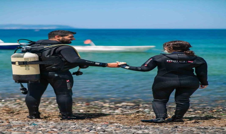 Yalova’da kız arkadaşı Feyza Ünal ile denizde tüplü dalış yapan Kenan Esen, hazırladığı pankartla evlilik teklifinde bulundu. Hayatında ilk kez dalış yapmanın heyecanını yaşayan Ünal, sürpriz evlilik teklifine kabul etti.