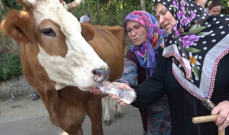 Eylem sırasında bölgeye getirilen su tankeriyle büyükbaş hayvanlara bu kez kovalarla su verildi. Yetkililerden sorunun çözümü için söz alan vatandaşlar eylemlerine son verdi.