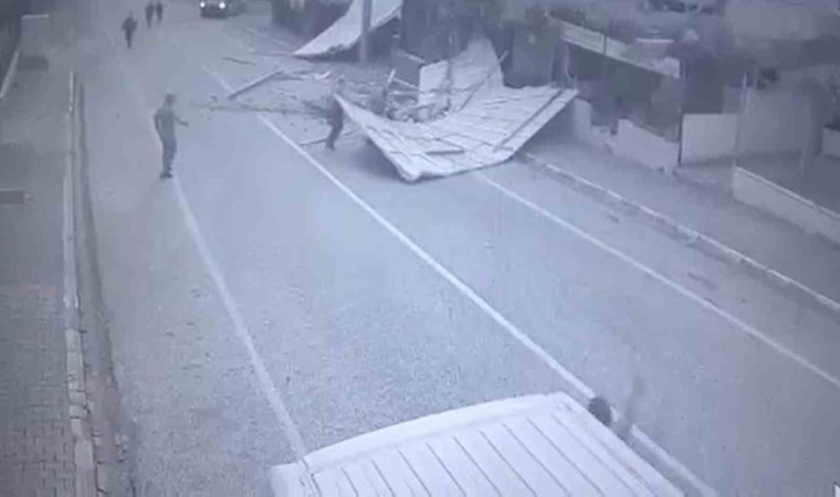 Yalova kent genelinde fırtına etkisini sürdürmeye devam ediyor. Fırtına nedeniyle Termal ilçesine bağlı Yenimahalle’de çatının uçma anı kameralara yansıdı. 2 kişinin yaralandığı olayda bir vatandaşı üzerine çatının düştüğü anlar güvenlik kameraları tarafından anbean kaydedildi. Çatının üzerinde düştüğü vatandaşın hafif şekilde yaralandığı öğrenildi.