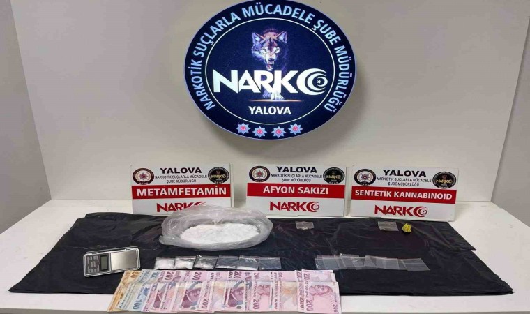 Alınan bilgiye göre, Yalova Emniyeti Narkotik Suçlarla Mücadele Şube Müdürlüğü ekipleri, çevre illerden temin ettikleri uyuşturucu maddelerin sokak düzeyinde ticaretini yapacakları değerlendirilen E.K., M.A.K., V.S.D. ile İ.Y., 3 ayrı olayda yakalanarak etkisiz hale getirildi. Şüphelileri üst ve ikametlerinde narkotik maddeler arama köpekleri Gölge ve Zeytin eşliğinde yapılan aramalarda, 148.87 gram metamfetamin, 106.38 gram sentetik kannabinoid, 0.65 gram afyon sakızı, 0.37 gram esrar, hassas terazi ile uyuşturucu ticaretinden elde edildiği değerlendirilen 6 bin TL ele geçirildi.