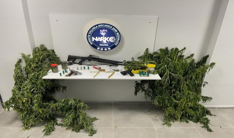 Alınan bilgiye göre, Yalova İl Emniyet Müdürlüğü Narkotik Suçlarla Mücadele Şube Müdürlüğü Narkotim ekipleri, Armutlu ilçesinde uyuşturucu üreterek ticaretini yaptığı ileri sürülen şüphelilere yönelik operasyon düzenlendi. Operasyonda S.Ö. ve D.K. gözaltına alınırken, 1 kilo 243 gram esrar, 7 kök Hint keneviri bitkisi, otomatik tüfek, 2 tabanca ve 105 fişek ele geçirildi.