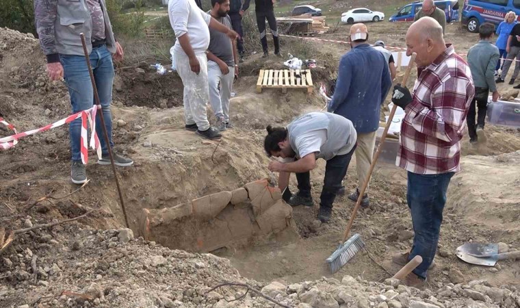 Yalova’nın Termal ilçesine bağlı Akköy’de villa inşaatı çalışma kazısında bulunan ve Roma dönemine ait olduğu düşünülen küp mezarın hemen yanı başında bir çocuğa ait küp mezar daha bulundu.