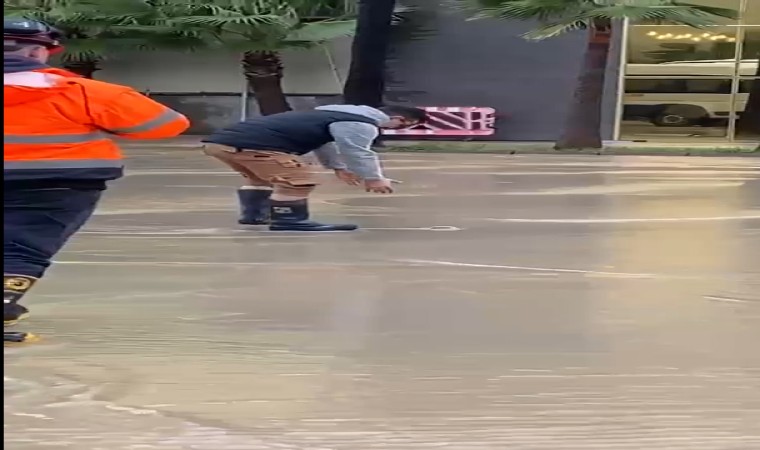 Yalova Altınova ilçesinde bulunan Çamdibi Barajı’nın açılmasıyla tersaneler bölgesindeki dere taştı. Taşan dereden oluşan birikintideki balıkları fark eden tersane çalışanı tatlı su sazanını elleriyle yakaladı.