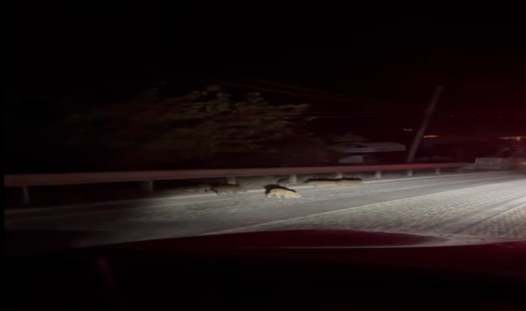Yalova’nın Çınarcık ilçesine bağlı Esenköy beldesinde bir sürü yavru domuz kara yoluna indi.
