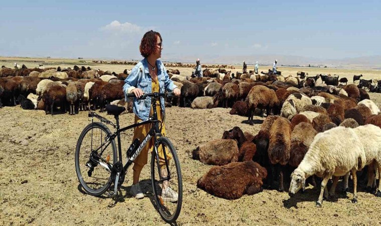 Bisikletin çevre dostu bir ulaşım aracı olarak önemine dikkat çekmek amacıyla Yalova’dan Muş’a kadar pedal çeviren Eğitimci Rahile Eren, geldiği kentte kadınlarla birlikte koyun sağdı ve bisikleti tanıttı.