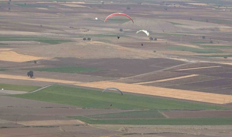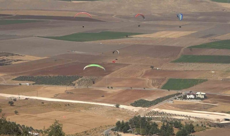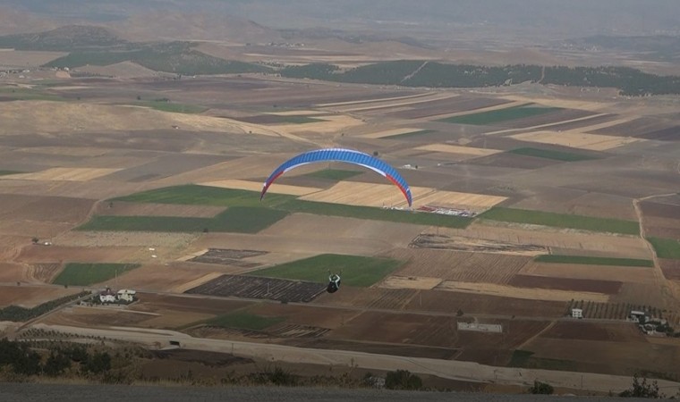 Yamaç paraşütü tutkunları, Gaziantep’in Nurdağı ilçesinde ova manzarasında farklı bir uçuş deneyimi yaşadı.