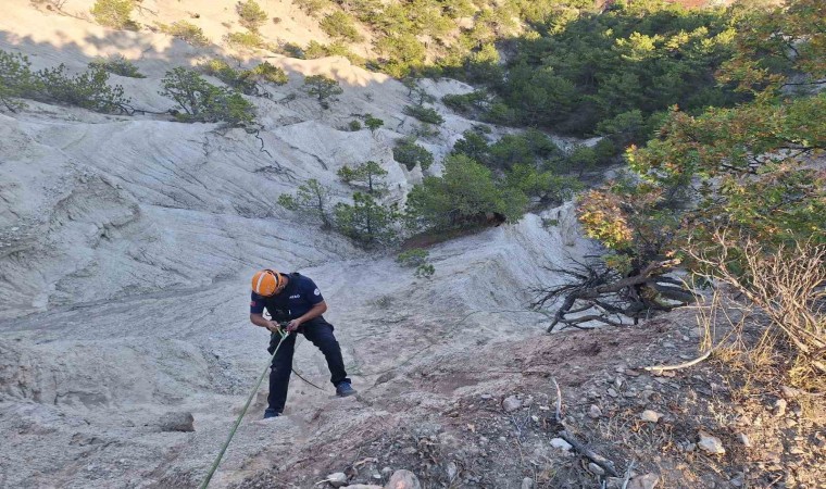 Eskişehir’de Afet ve Acil Durum Yönetimi Başkanlığı (AFAD) ekipleri tarafından sıkıştığı yamaçtan kurtarılan keçi sahibine teslim edildi.