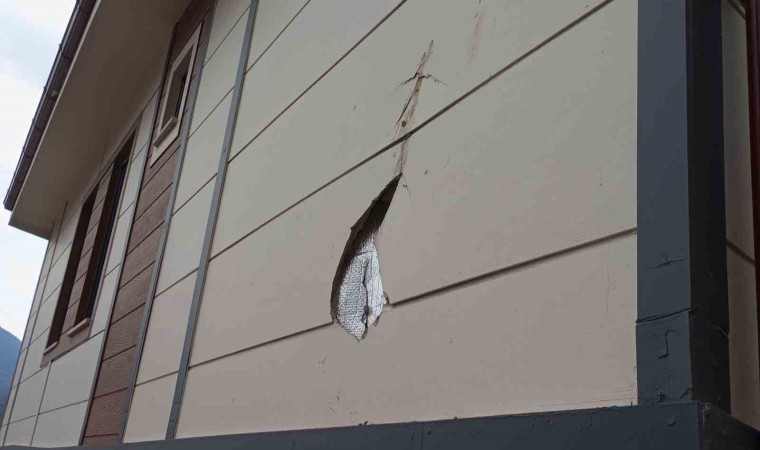 Artvin’in Yusufeli ilçesi Yeniköy köyünde, yamaçtan kopan kaya parçaları evlere isabet etti. Bazı evlerde hasar oluşurken, kayaların düşme anı cep telefonu kamerasına yansıdı.