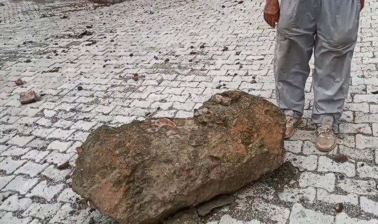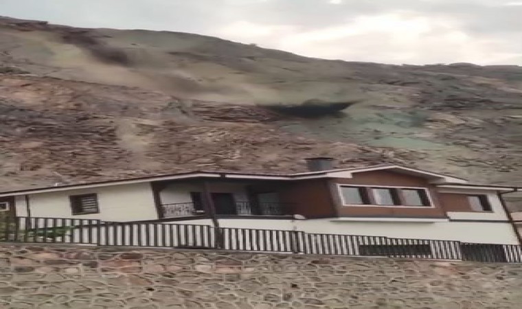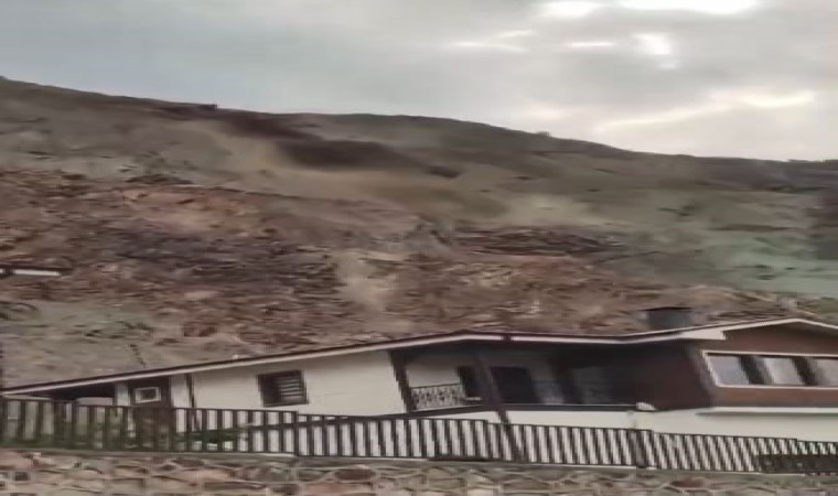 Yeniköy köyünde, yamaçtan kopan toprak ve kaya parçaları evlere isabet etti. Olayda yaralanan olmazken, bazı evler hasar aldı. Kayaların düşme anı cep telefonu kamerasına yansıdı.