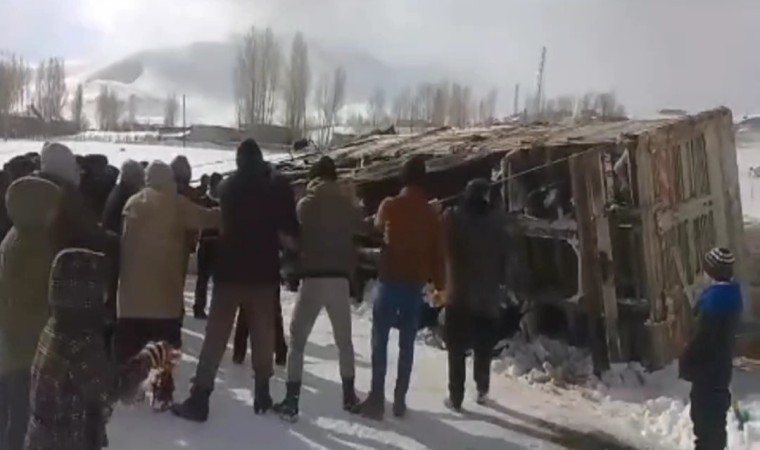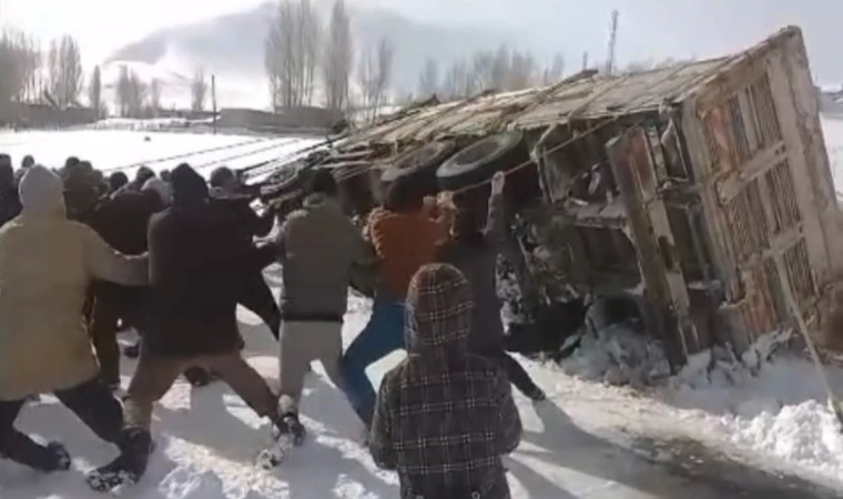 Edinilen bilgiye göre, kaza, Gürpınar ilçesinde bağlı Tutmaç Mahallesi yakınlarında meydana geldi. Sürücüsünü ismi öğrenilemeyen saman yüklü kamyon, yolun karlı ve buzlu olmasından dolayı kanala düşerek yan yattı. Yara almadan kurtulan sürücünün imdadına mahalle sakinleri yetişti. Yanlarına getirdikleri ipleri kamyona bağlayan vatandaşlar, hep birlikte iplere asılarak saniyeler içerinde düzelttiler. Bu görüntüler kısa sürede sosyal medyada takdir topladı.