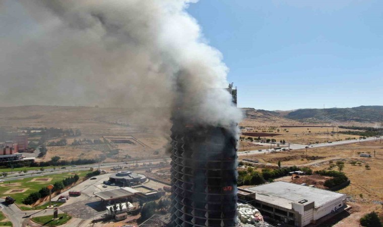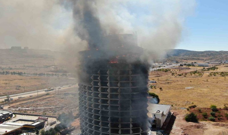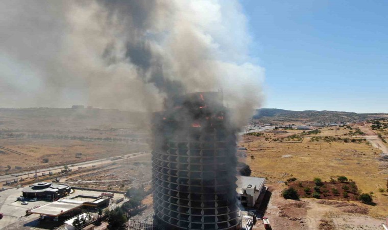 Gaziantep’te eskiden otel olarak kullanılan şuan boş olan 17 katlı binada çıkan yangın dron ile görüntülendi.