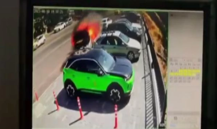 ANKARA, (DHA)- ANKARA'nın Çankaya ilçesinde park halinde çalışırken alev alan hafif ticari araç, hareket edip park halindeki cipe çarptı. Kaza, güvenlik kamerasına yansıdı.