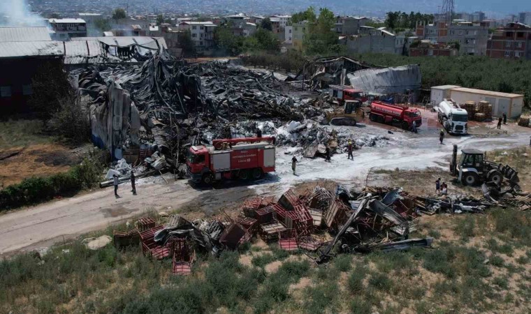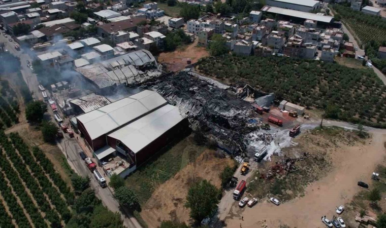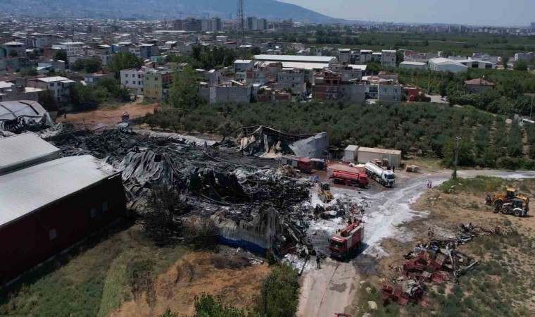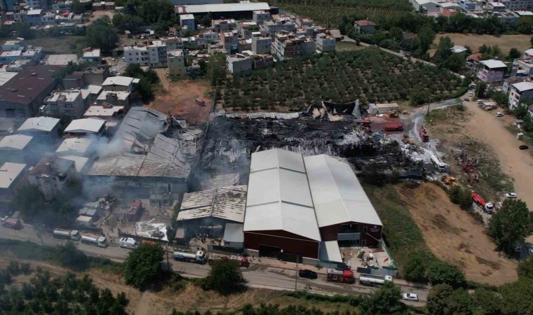 Bursa’da bir fabrikada başlayan ve kısa sürede 3 fabrikaya daha sıçrayan yangın kontrol altına alındı. Soğutma çalışmalarının sürdüğü fabrikalar havadan dron ile görüntülendi.