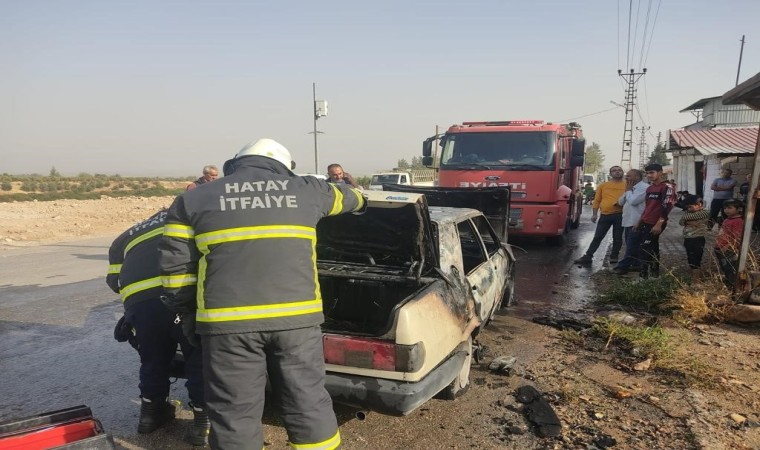 Hatay’da seyir halindeyken yanmaya başlayan otomobilde maddi hasar oluştu.