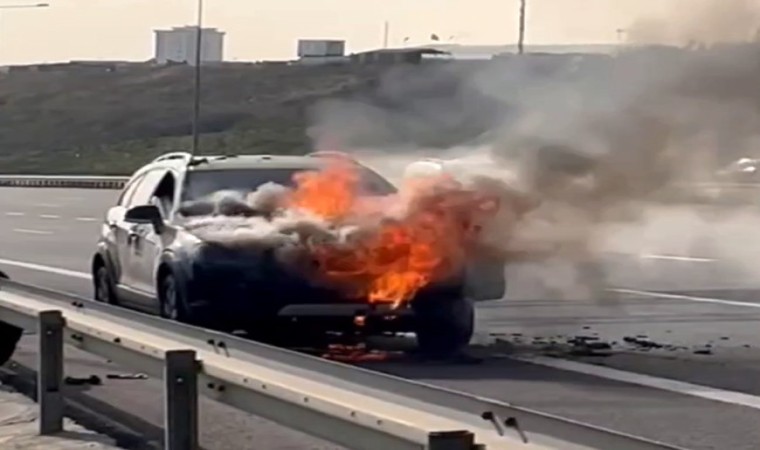 Seyir halindeyken motor kısmından alevler yükselen otomobil tamamen kullanılamaz hale gelirken, o anlar ise cep telefonu kamerasına yansıdı. Görüntülerde otomobilin alevli suretle yandığı, ardından ise olay yerine gelen itfaiye ekiplerinin yangına müdahale ederek söndürdüğü görülüyor.