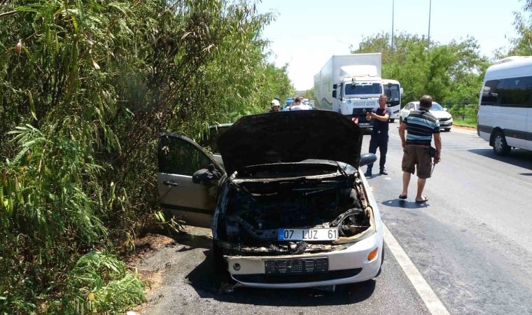 Olay, Manavgat-Antalya D-400 Karayolu’nda yaşandı. Edinilen bilgiye göre, Manavgat istikametinden Antalya istikametine yolun sol şeridinde seyir halindeki Bayram Durmuş’un kullandığı 07 LUZ 61 plakalı otomobilin motor bölümünden, Peri-Yavrudoğan ışıklı kavşağına yaklaştığı sırada duman çıkmaya başladı. Otomobili yolun sağına çeken otomobil sürücüsü ve otomobilde yolcu olarak bulunan 2 arkadaşı araçtan inerken, yardımlarına ilk olarak yoldan geçen araç sürücüleri ve yolun karşısında bulunan akaryakıt istasyonu çalışanları koştu.