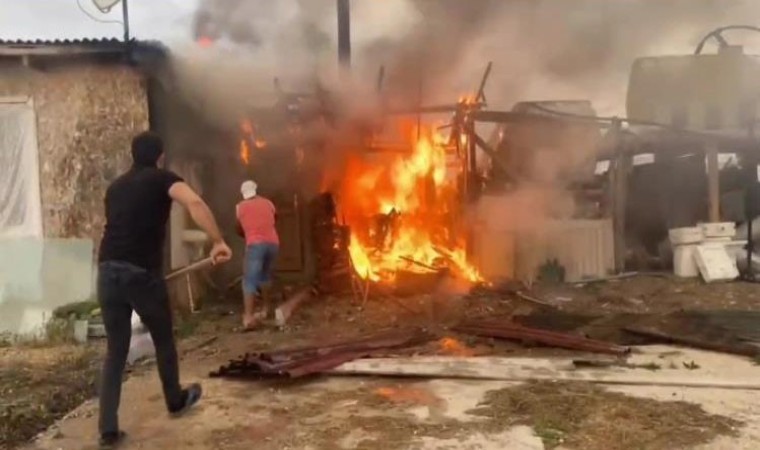 Amasya’nın Suluova ilçesinde bir bağ evinde yangın çıktı. Eve elektrik akımı sağlayan kablonun patlayarak kıvılcımların saçıldığı anlar kameralara yansıdı.