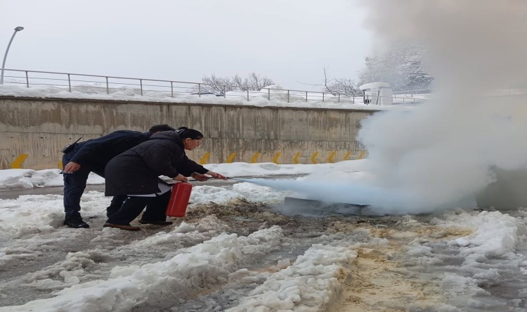Bolu Belediyesi İtfaiye Müdürlüğü ekipleri eğitimlerine devam ediyor. BAİBÜ Diş Hekimliği Fakültesi personeline ilk önce teorik eğitim verildi. Teorik eğitimin ardından personele uygulamalı çalışmalarla yangına müdahale pratiği yaptırıldı. İtfaiye ekipleri, yangın söndürme tüpünün doğru kullanımını göstererek, acil durumlarda yapılması gerekenler konusunda uyarılarda bulundu. Eğitimde personelin dikkatle takip ettiği uygulamalı bölümde, yangın tüpleriyle kontrollü şekilde ateş söndürme çalışmaları gerçekleştirildi. Ekipler tarafından, eğitim sonunda personele muhtemel yangın durumlarında doğru müdahale yapmanın önemine değinildi.