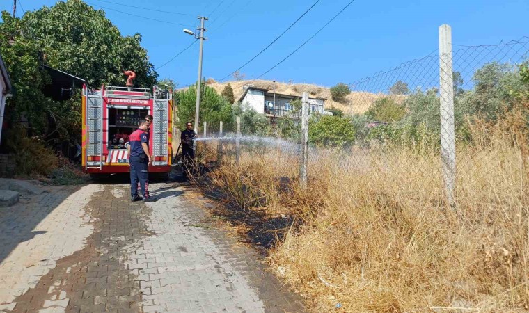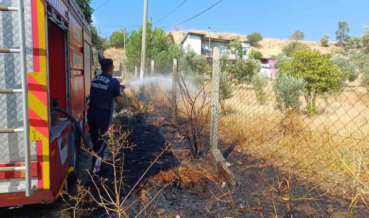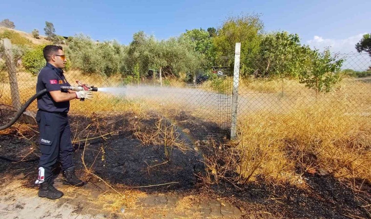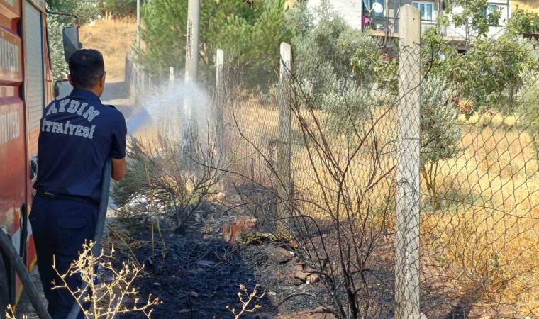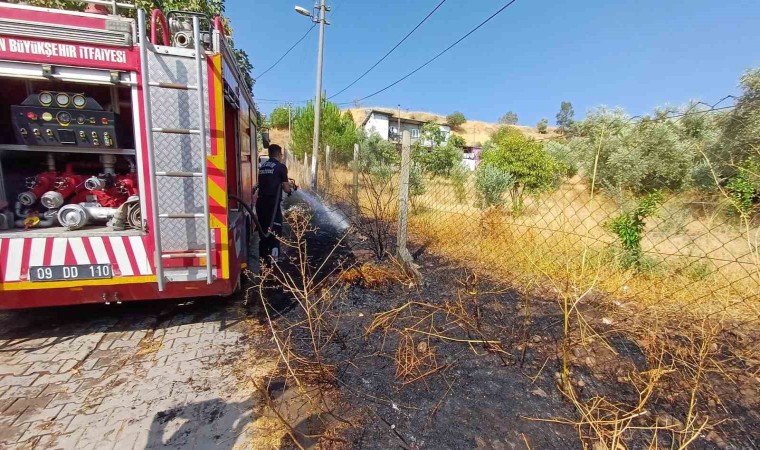 Aydın’ın Efeler ilçesinde yol kenarında tutuşan kuru otlar, itfaiyenin hızlı müdahalesiyle, bahçeye sıçramadan söndürüldü.