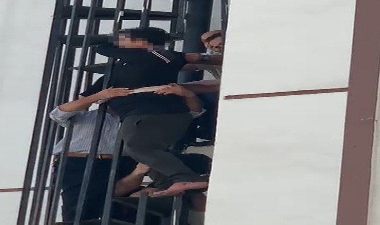 Aile, ekipler gelinceye kadar oğullarının düşmemesi için çarşaf ile onu demir korkuluklara bağlayarak tutmaya çalıştı. İtfaiye ekipleri olay yerine geldiğinde uzun uğraşlar sonucunda demir korkulukları keserek adamı kurtarmayı başardı.