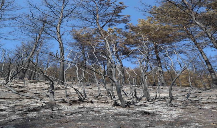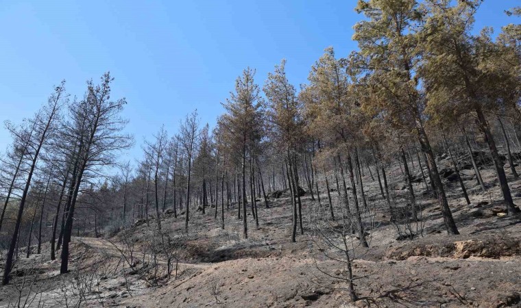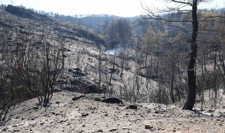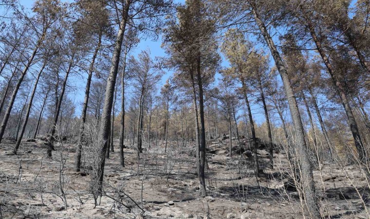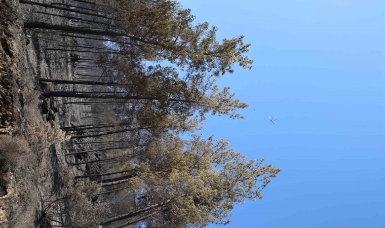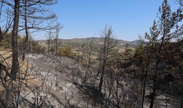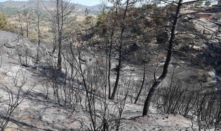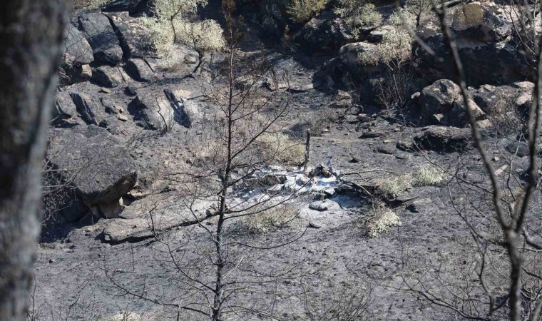 Muğla’nın Yatağan ilçesinde çıkan orman yangını sonrasında yeşilin siyaha döndüğü yerler fotoğraf karelerine yansıdı.