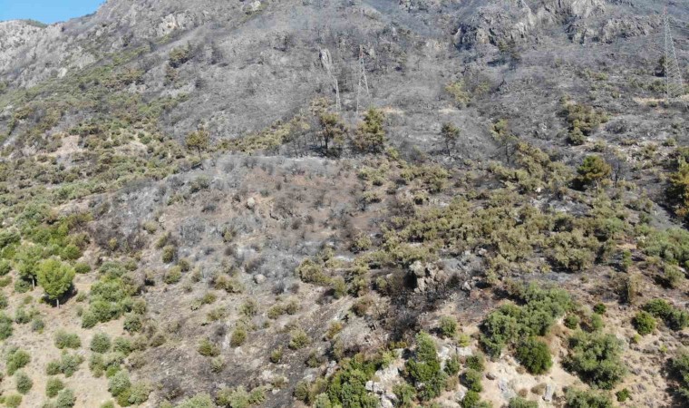 Aydın’ın Germencik ilçesi Gümüşyeniköy’de dün öğlen saatlerinde başlayıp rüzgarın da etkisi ile büyüyerek Söke ilçesi Argavlı Mahallesi’ne kadar yayılan orman yangınından geri kalan acı manzara yürekleri dağladı. Şu an itibariyle tehlikenin büyük ölçüde atlatıldığı yangında çevre illerden gelen yer ekipleri geri gönderilmeye başlandı.