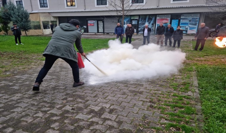 DÜZCE(İHA) – Düzce İl Özel İdaresi çalışanlarına iş sağlığı ve iş güvenliği eğitimi verildi. Eğitimde çalışanlar çıkan yangını yangın tüpleri ile söndürdü.