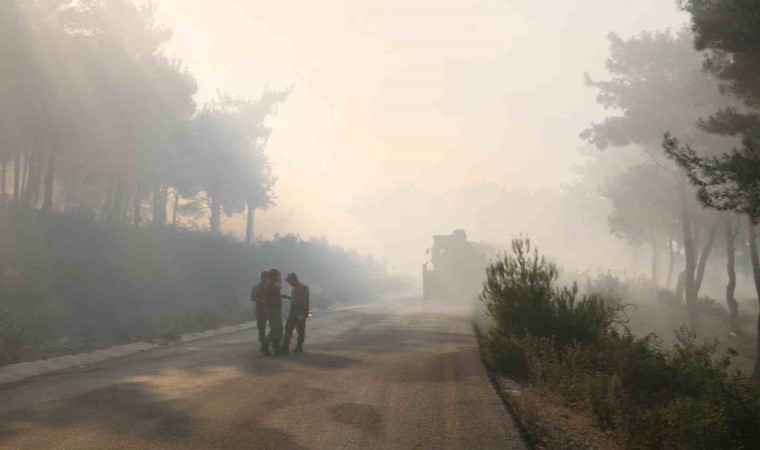 Hatay’ın Belen ilçesinde devam eden orman yangınında ekiplerin çalışmaları aralıksız sürerken, bir su tankeri ise alevlerin içinde kaldı.