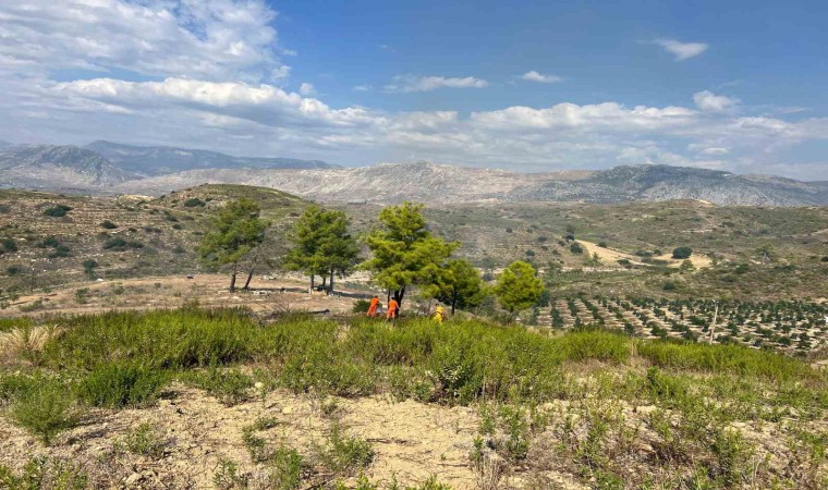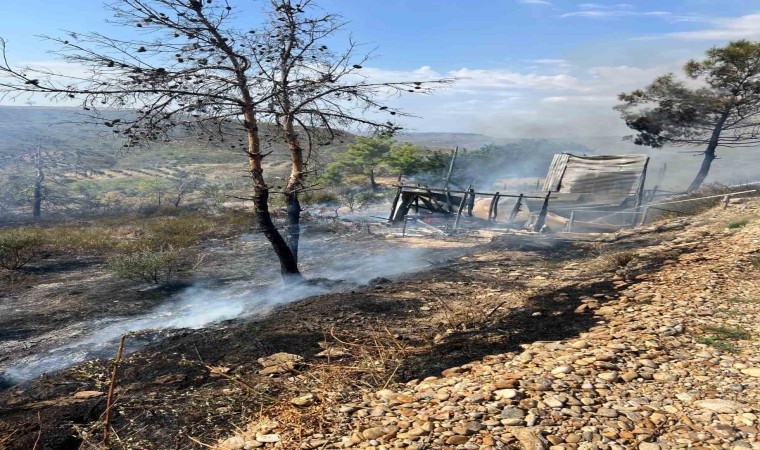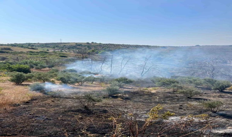 Yangında 150 dolayında zeytin ağacı ile zeytinlikte bulunan barakanın zarar gördüğü, çalı ve otların yandığı bildirildi.