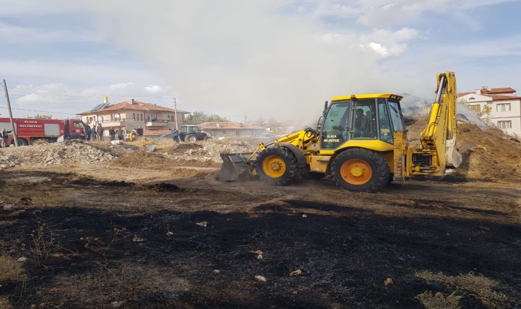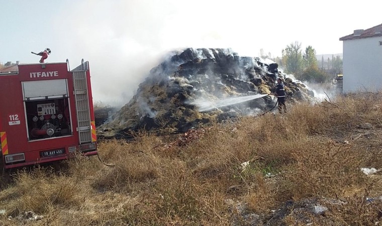 Çorum’un Alaca ilçesinde çıkan yangında 2 bin 500 adet saman balyası yandı.