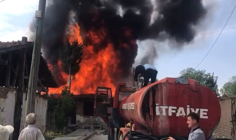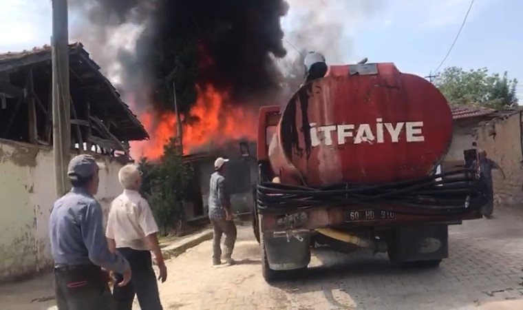 Tokat’ta tek katlı ahşap ev, çıkan yangında alev topuna döndü.