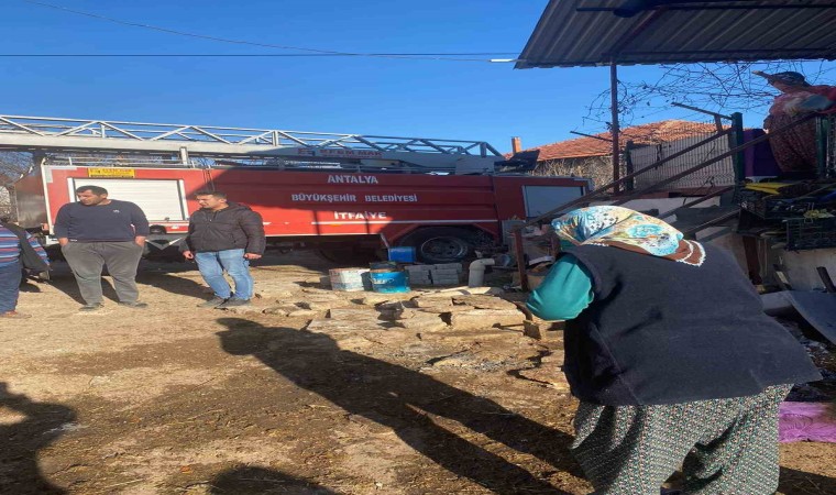 Antalya’nın Korkuteli ilçesinde meydana gelen ev yangınında ev kullanılamaz hale gelirken, ahırda bulunan 2 büyükbaş hayvan elektrik akımına kapılarak telef oldu.
