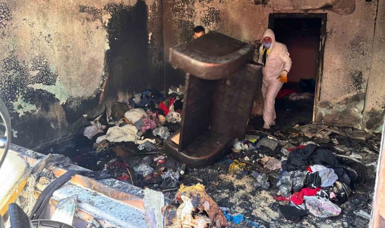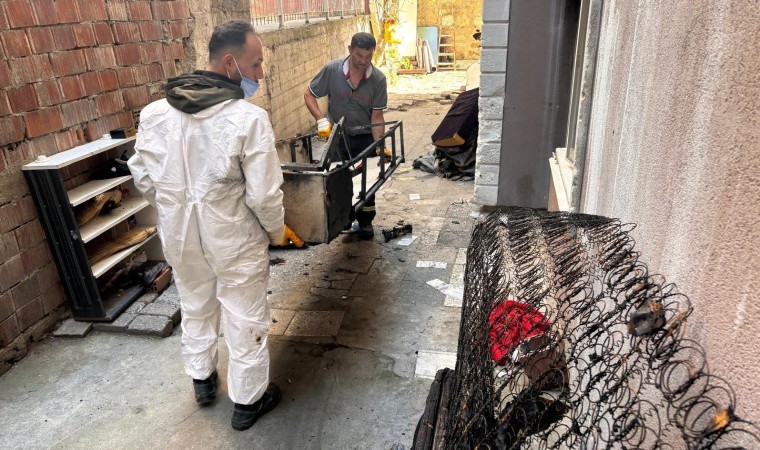 Gölcük Belediyesi ekipleri, Merkez Mahallesi’nde bir binada çıkan yangında büyük hasar gören evde temizlik çalışması yaptı.