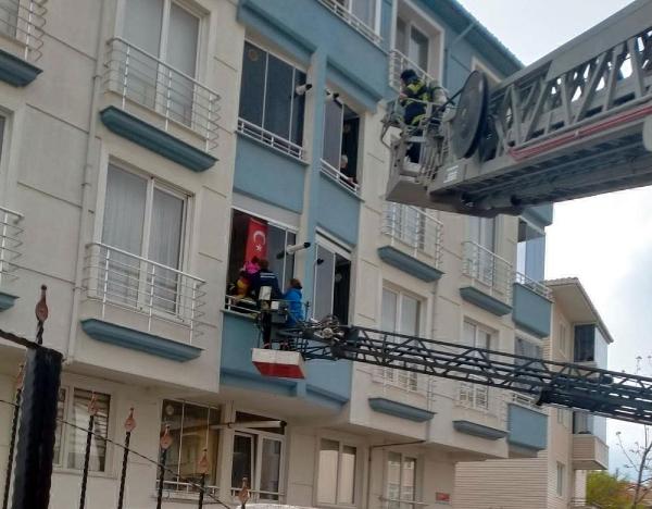 Yangında mahsur kalan 15 kişi, itfaiye merdiveniyle kurtarıldı