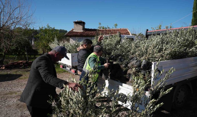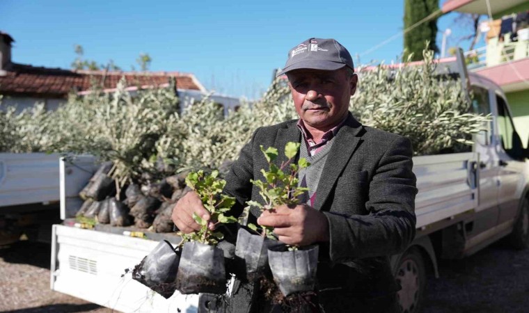 Antalya Büyükşehir Belediyesi, Temmuz ayında Serik ilçesi Yumaklar Mahallesi’nde çıkan yangında bahçeleri zarar gören üreticilere zeytin ve keçi boynuzu fidanı hibe etti.