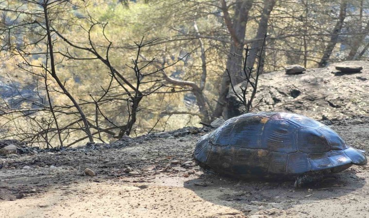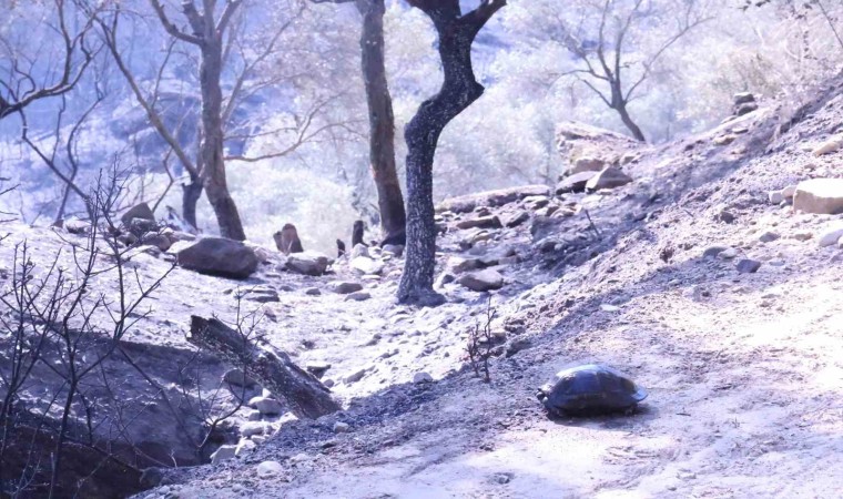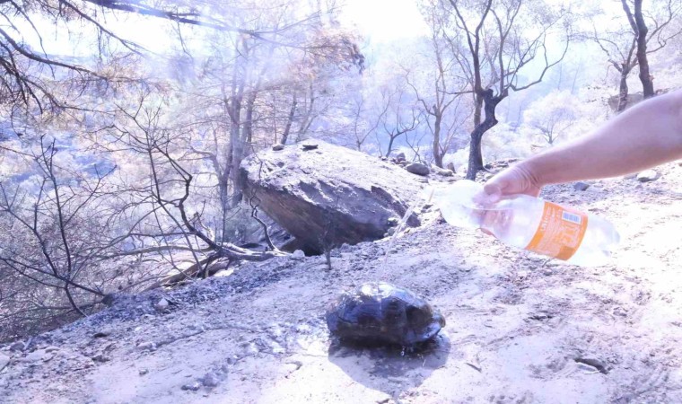 Yangından kurtulan bir kaplumbağa ise adeta bölgede görev yapan gazetecilere sığındı. Kaplumbağayı fark eden gazeteciler önce hayvanı serinletti daha sonra ona su içirdi. Kaplumbağa ile ilgilenen gazeteciler, yol kenarına taşıdıkları hayvanın kurtarılması için Muğla Büyükşehir Belediyesi’nin ‘Can Dostları’ ekiplerine bilgi verdi. Yol üzerindeki ayak izlerinden birçok kez dolandığı ve yuvasını aradığı tahmin edilen kaplumbağanın, ekipler tarafından koruma altına alındığı öğrenildi.