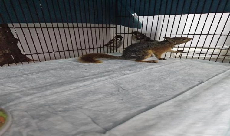Yangından yaralı kurtarılan yavru sincap tedavi altında