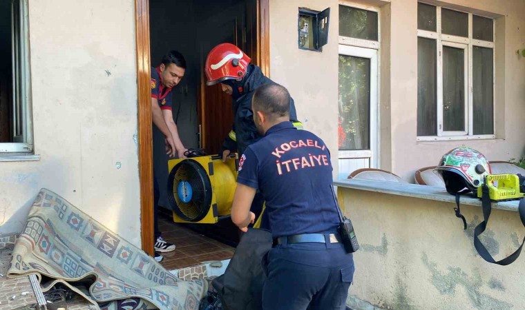 Kocaeli’nin Kartepe ilçesinde tek katlı betonarme evde yangın çıktı. Yangın sırasında evde olan baba ve kızı alevleri görünce kendilerini dışarı attı.