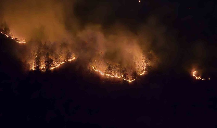 Karabük’ün Ovacık ilçesinde söndürme çalışmalarında 32 saati geride bırakan orman yangının yayıldığı alan havanın kararmasıyla ortaya çıktı.