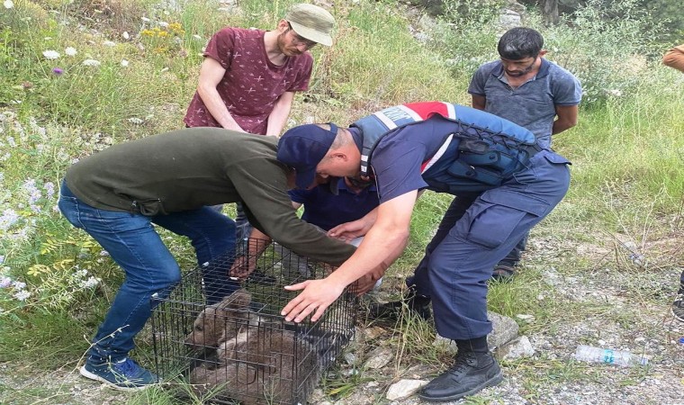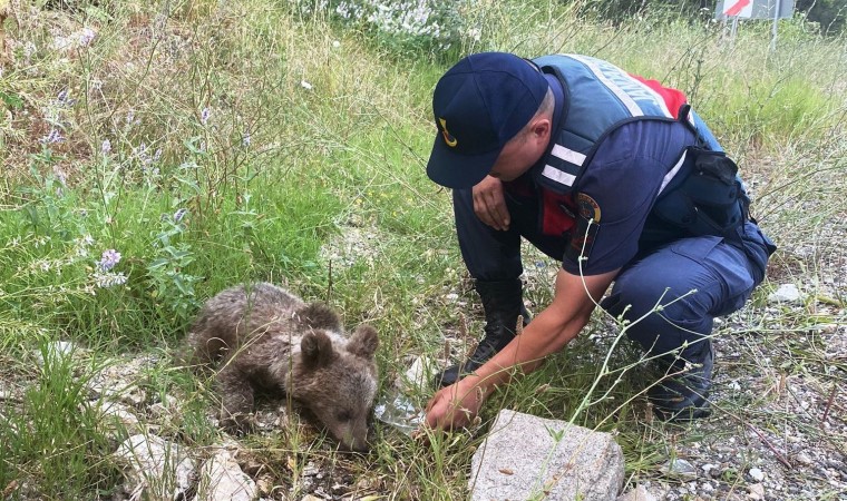 Kütahya’nın Domaniç ilçesinde ormanlık alanda yaralı halde bulunan ayı yavrusuna jandarma sahip çıktı.