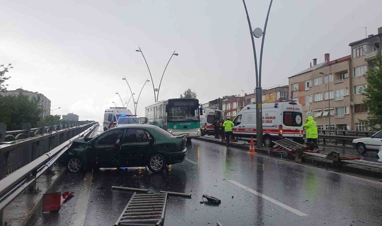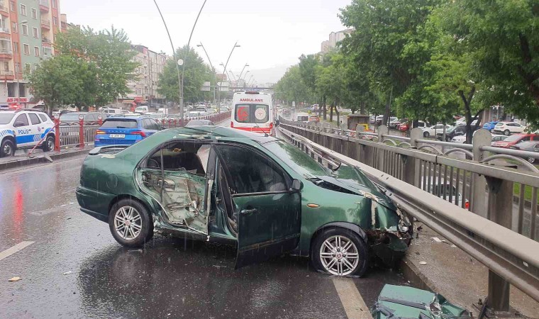 Kayseri’nin Kocasinan kontrolden çıkan otomobil refüje çarptıktan sonra güvenlik bariyerine girdi. Kazada 3’ü çocuk 6 kişi yaralanırken, bir sağlık çalışanı kazada yaralanan bebeği sağanak yağışta ıslanmaması için kucağına alarak sardı.